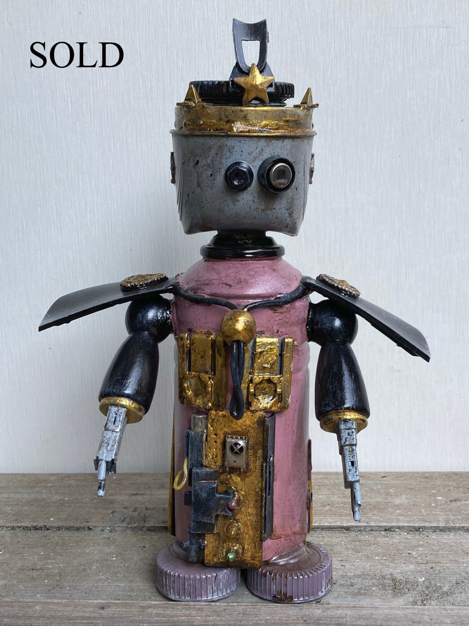 Gemaakt van oa. plastic dopjes, computer en cameraonderdelen.